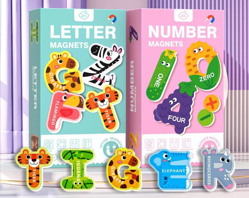 Make learning the alphabet and numbers a fun and hands-on experience! These 26-piece magnetic letters or number sets feature colourful, cartoon-style animal designs that help kids connect letters and numbers with sounds and animals. The large, chunky magnets are perfect for little hands and stick easily to the fridge or any magnetic surface. Great for learning spelling, letter or number recognition and early literacy and numeracy at home.