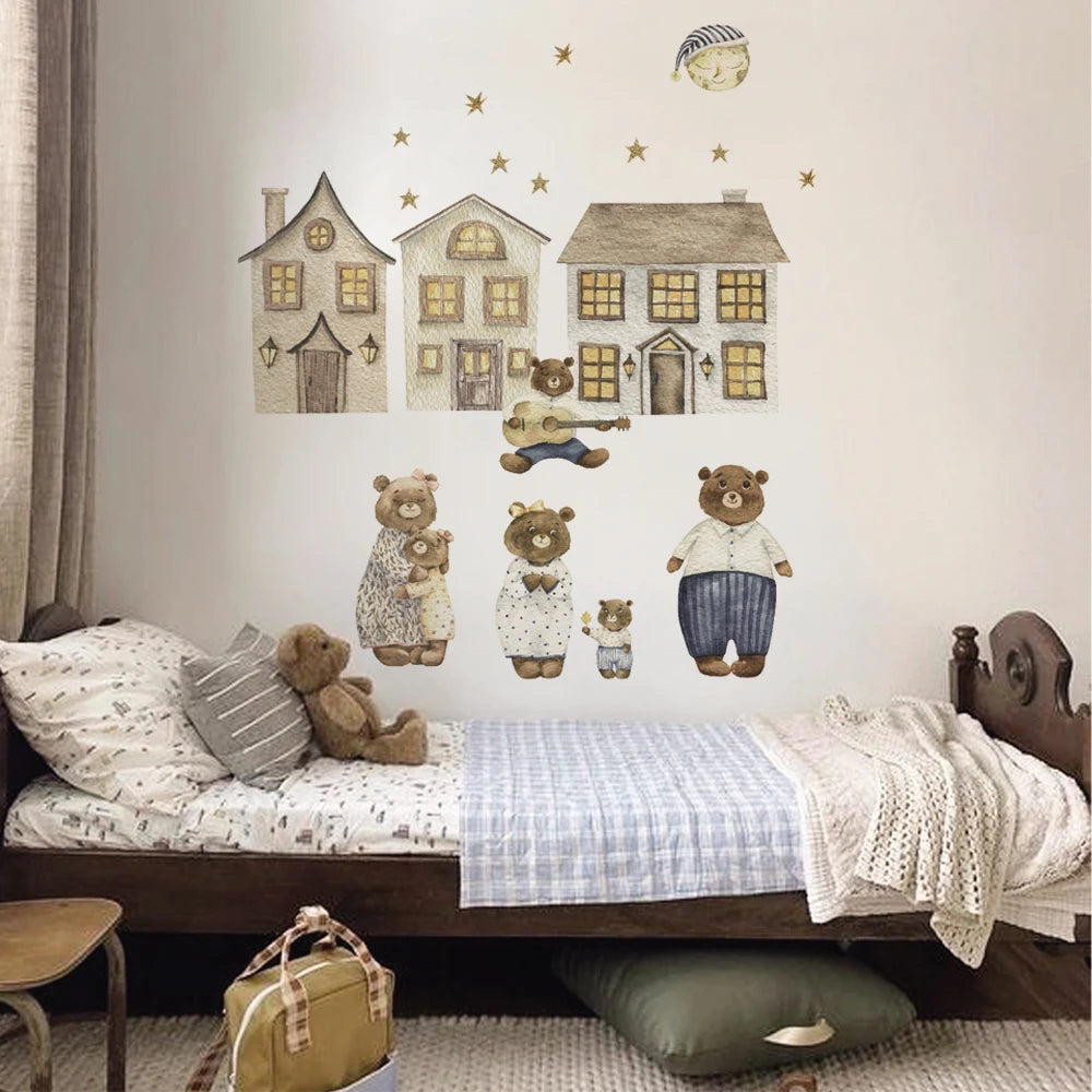 Bring a whimsical forest scene to life with these Boho Cartoon Fabric Wall Decals, featuring a cozy mushroom house, a playful fox, and friendly woodland animals. Designed in soft, earthy tones, these decals are perfect for adding warmth and charm to nurseries, girls' bedrooms, or playrooms.