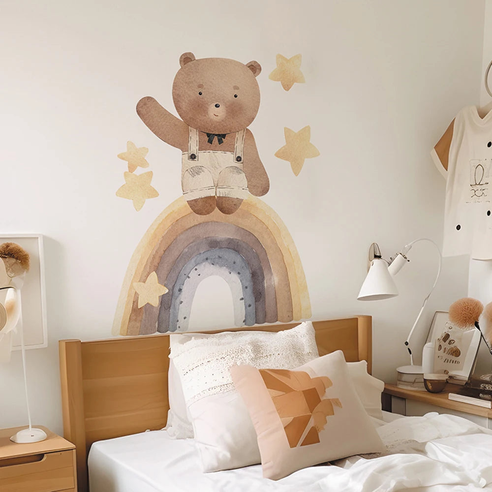 Brighten up your little one's space with these Boho Cartoon Fabric Wall Decals, featuring a playful rainbow, a cute bear, and friendly woodland animals. Perfect for creating a whimsical, cozy atmosphere in nurseries, kids' rooms, or as a thoughtful gift.
