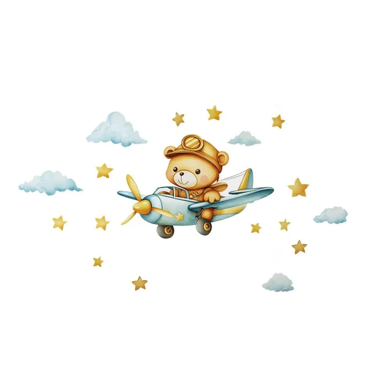 Enhance your child's room with this adorable Cartoon Bear Airplane Wall Sticker. Featuring a self-adhesive nursery decal, this mural adds a fun and playful touch to the room's background. The cute cartoon design is perfect for a child's bedroom and will make the space feel like a whimsical wonderland.