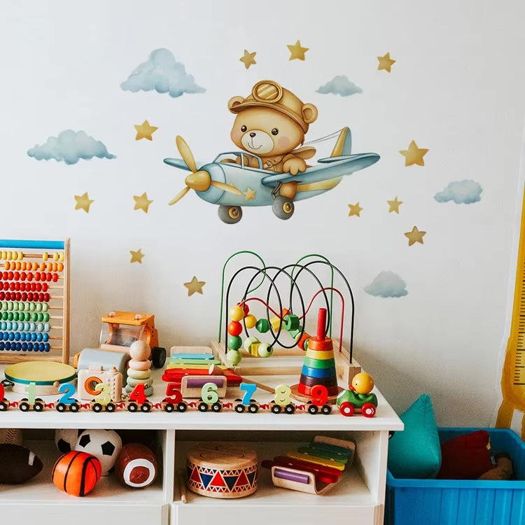 Cartoon Bear Airplane Wall Sticker