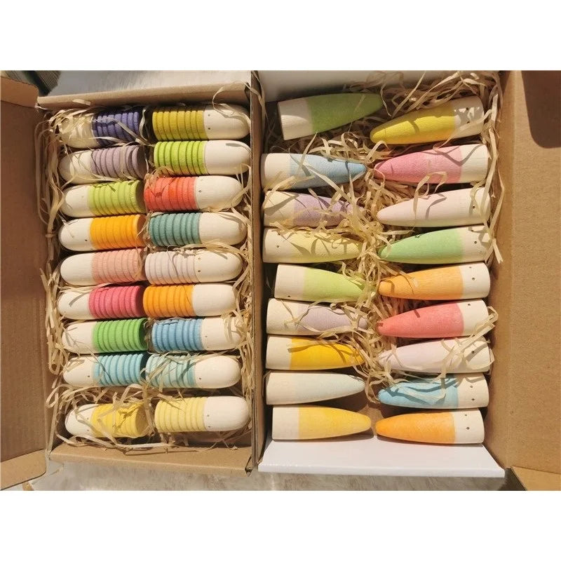 Ignite your child’s imagination with this Montessori-inspired loose parts set. Crafted from premium lime wood, it includes vibrant palo sticks, charming peg dolls, and colorful or pastel cubes—designed to inspire open-ended play. These tactile pieces promote creativity, problem-solving, and fine motor skill development in a natural and engaging way.