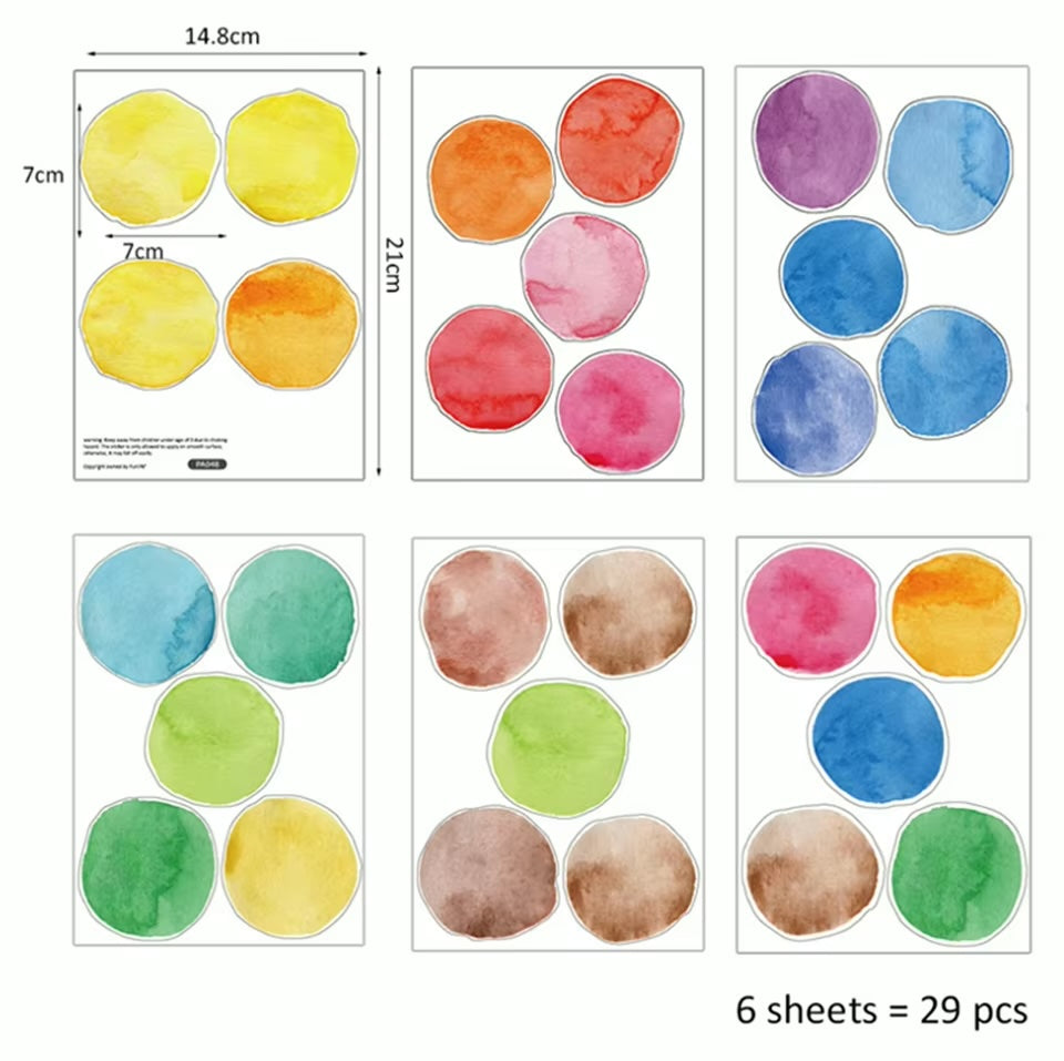 Dimensions and Quantity: Each package includes 6 sheets with 29 vibrant polka dots measuring 6.5 cm x 6.5 cm each.