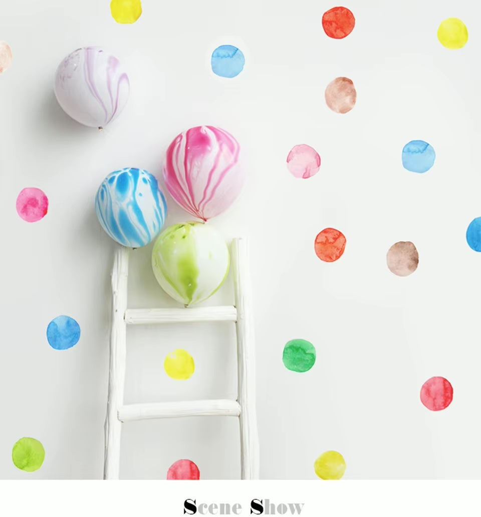 Add a touch of creativity to any nursery room with our 29-piece set of PVC baby wall decals. These coloured polka dot stickers are perfect for children and are easy to apply. Elevate your child's room with these fun and vibrant decals.