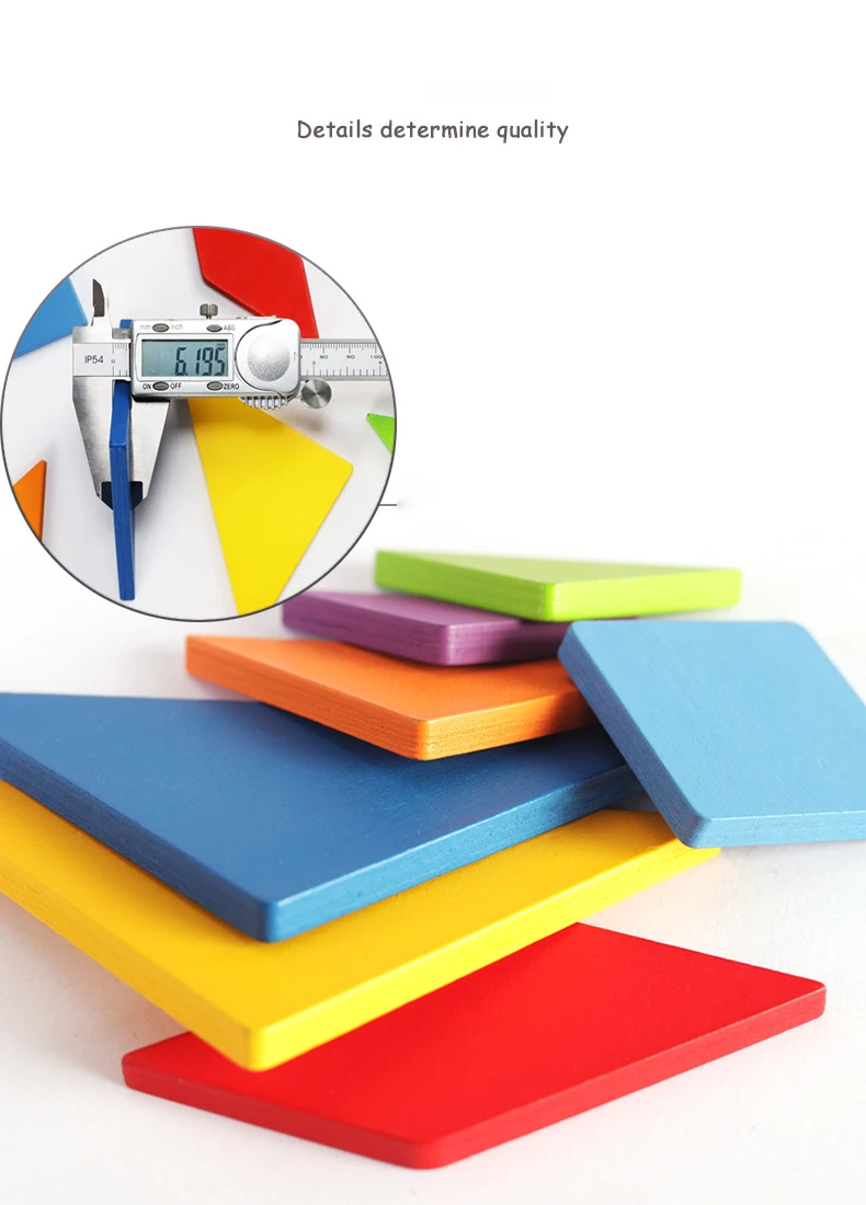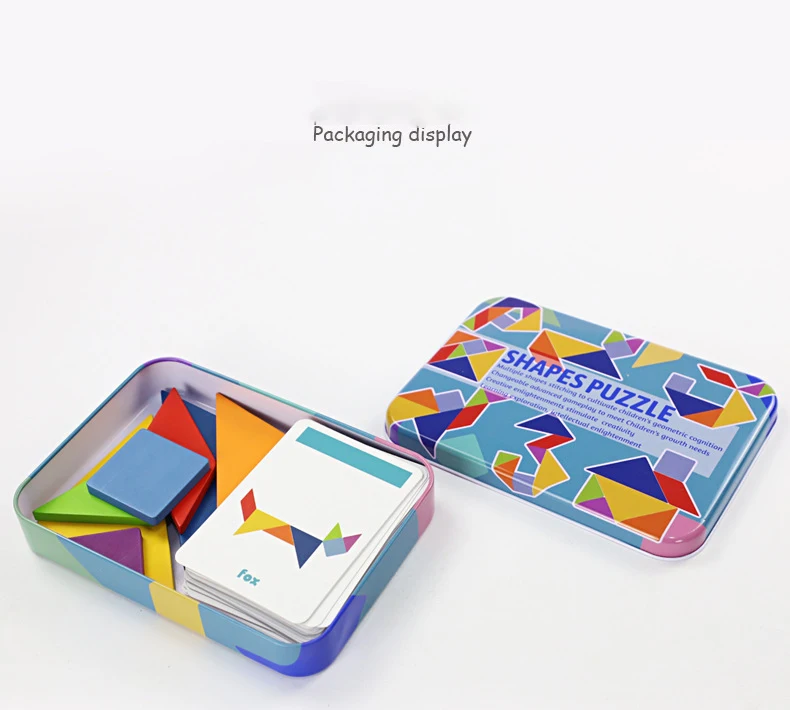 Children's Wooden Colorful Tangram Iron Box Storage Jigsaw Puzzle Puzzle Early Education Intelligence Number Letter Wooden Toys